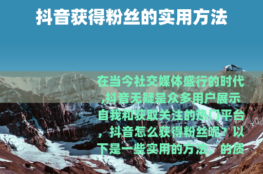在当今社交媒体盛行的时代,抖音无疑是众多用户展示自我和获取关注的热门平台,抖音怎么获得粉丝呢?以下是一些实用的方法。