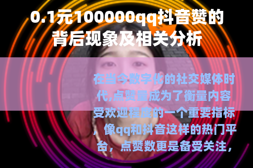 在当今数字化的社交媒体时代,点赞量成为了衡量内容受欢迎程度的一个重要指标,像qq和抖音这样的热门平台,点赞数更是备受关注,而市场上出现了一种令人瞩目的现象,那就是声称0.1元就能获得100000qq抖音赞。