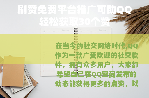 在当今的社交网络时代,QQ作为一款广受欢迎的社交软件,拥有众多用户,大家都希望自己在QQ空间发布的动态能获得更多的点赞,以此来展示自己的人气和受欢迎程度,而刷赞免费平台的出现,为许多人提供了一种快速获取赞的途径。