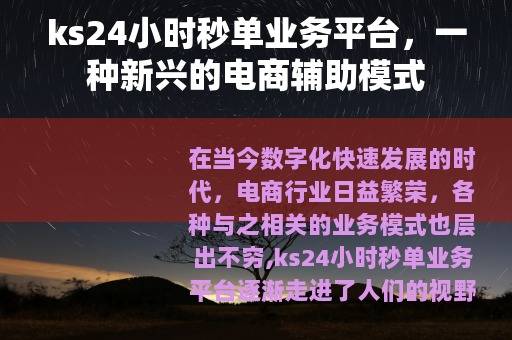 在当今数字化快速发展的时代,电商行业日益繁荣,各种与之相关的业务模式也层出不穷,ks24小时秒单业务平台逐渐走进了人们的视野。