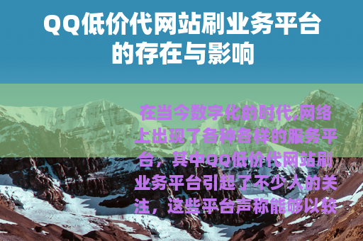 QQ低价代网站刷业务平台在网络世界中是一种客观存在的现象,它们既有一定的市场需求,也带来了诸多问题,用户在面对这些平台时,应该理性看待,权衡利弊,不要盲目追求虚假的数据,而要注重自身的真实价值和社交关系的建立,以实现更加健康、可持续的网络社交体验。