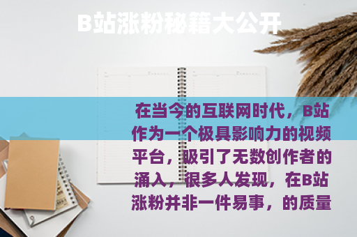 在当今的互联网时代,B站作为一个极具影响力的视频平台,吸引了无数创作者的涌入,很多人发现,在B站涨粉并非一件易事。 的质量是关键,要想在B站获得粉丝的关注,必须提供有价值、有趣、有特色的视频内容,这意味着要深入了解自己的目标受众,知道他们喜欢什么、关注什么,从而创作出能够满足他们需求和兴趣的视频,无论是搞笑幽默的段子、深度的知识讲解,还是精彩的游戏攻略,都要确保在内容上做到精益求精,让观众在观看后能有所收获,这样才能吸引他们持续关注你的频道。