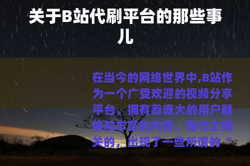 在当今的网络世界中,B站作为一个广受欢迎的视频分享平台,拥有着庞大的用户群体和丰富的内容,而与之相关的,出现了一些所谓的“b站代刷平台”。