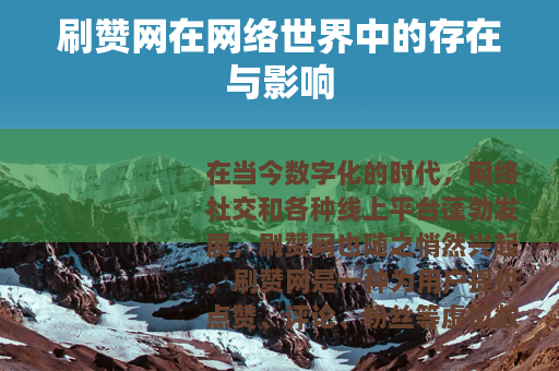 在当今数字化的时代,网络社交和各种线上平台蓬勃发展,刷赞网也随之悄然兴起,刷赞网是一种为用户提供点赞、评论、粉丝等虚拟数据增长服务的网络平台。