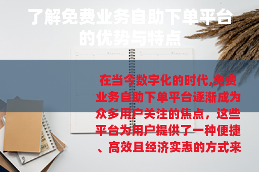 在当今数字化的时代,免费业务自助下单平台逐渐成为众多用户关注的焦点,这些平台为用户提供了一种便捷、高效且经济实惠的方式来满足各种业务需求。