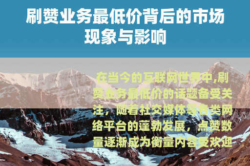 刷赞业务最低价是互联网发展过程中一个值得关注的现象,它涉及到市场、技术、用户、监管等多个方面,我们要全面、深入地分析其产生的原因、带来的影响以及应对的策略,通过各方的共同努力,实现互联网行业的可持续发展,为我们的社会和生活创造更多的价值和福祉,让我们共同期待一个更加健康、有序、繁荣的互联网未来。