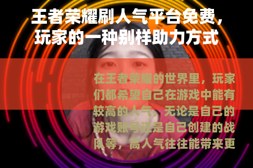 在王者荣耀的世界里,玩家们都希望自己在游戏中能有较高的人气,无论是自己的游戏账号还是自己创建的战队等,高人气往往能带来更多的关注和乐趣,而王者荣耀刷人气平台免费的出现,为许多玩家提供了一种实现高人气梦想的途径。