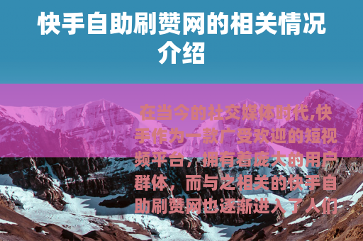 在当今的社交媒体时代,快手作为一款广受欢迎的短视频平台,拥有着庞大的用户群体,而与之相关的快手自助刷赞网也逐渐进入了人们的视野。