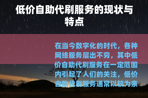低价自助代刷服务作为一种网络时代的产物,有其自身的特点和市场需求,但用户在使用时需要保持理性和清醒的认识,既要看到其带来的便利和机会,也要充分考虑到其可能存在的不足和风险,从而做出最适合自己的选择,在网络世界中实现可持续的发展。