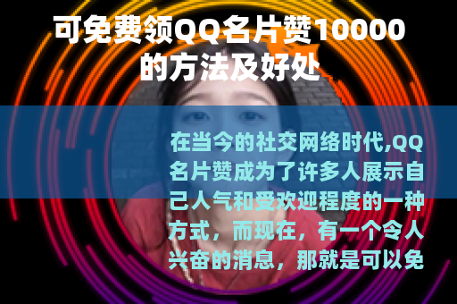 免费领QQ名片赞10000是一件非常有意义的事情,它不仅能让你的QQ名片更加耀眼,提升你的社交地位,还能为你带来诸多的好处和机会,只要你选择正规的途径,积极参与相关活动,就能够轻松实现拥有10000个名片赞的目标,让自己在QQ社交世界中更加出彩。