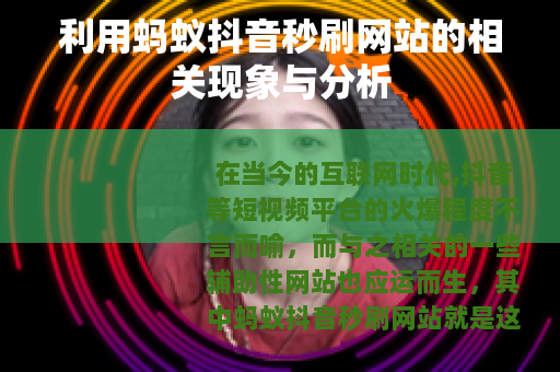 在当今的互联网时代,抖音等短视频平台的火爆程度不言而喻,而与之相关的一些辅助性网站也应运而生,其中蚂蚁抖音秒刷网站就是这样一个备受关注的存在。