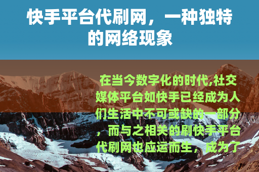 在当今数字化的时代,社交媒体平台如快手已经成为人们生活中不可或缺的一部分,而与之相关的刷快手平台代刷网也应运而生,成为了一个备受关注的网络现象。