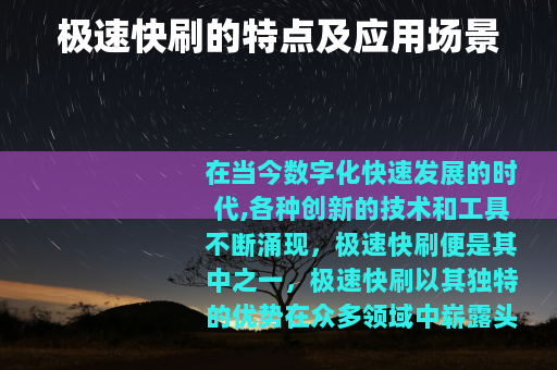 在当今数字化快速发展的时代,各种创新的技术和工具不断涌现,极速快刷便是其中之一,极速快刷以其独特的优势在众多领域中崭露头角,为人们的生活和工作带来了极大的便利。