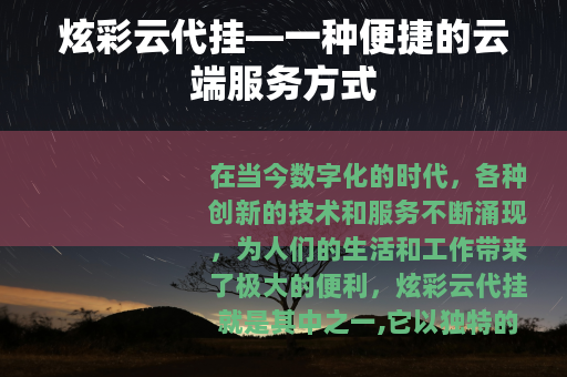 在当今数字化的时代,各种创新的技术和服务不断涌现,为人们的生活和工作带来了极大的便利,炫彩云代挂就是其中之一,它以独特的优势在众多云端服务中崭露头角。