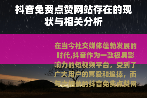 在当今社交媒体蓬勃发展的时代,抖音作为一款极具影响力的短视频平台,受到了广大用户的喜爱和追捧,而与之相关的抖音免费点赞网站也在网络上悄然出现,引发了众多用户的关注和讨论。