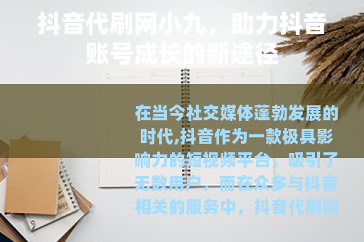 在当今社交媒体蓬勃发展的时代,抖音作为一款极具影响力的短视频平台,吸引了无数用户,而在众多与抖音相关的服务中,抖音代刷网小九逐渐崭露头角,为众多抖音用户提供了一种独特的助力方式。
