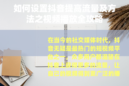 在当今的社交媒体时代,抖音无疑是最热门的短视频平台之一,众多用户都渴望在抖音上获得更多的流量,让自己的视频得到更广泛的播放,如何设置抖音才能提高流量呢?以下是一些实用的方法。
