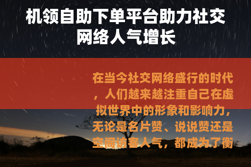 在当今社交网络盛行的时代,人们越来越注重自己在虚拟世界中的形象和影响力,无论是名片赞、说说赞还是空间访客人气,都成为了衡量一个人社交活跃度和受欢迎程度的重要指标,而机领自助下单平台的出现,为广大用户提供了一个免费提升这些数据的便捷途径。