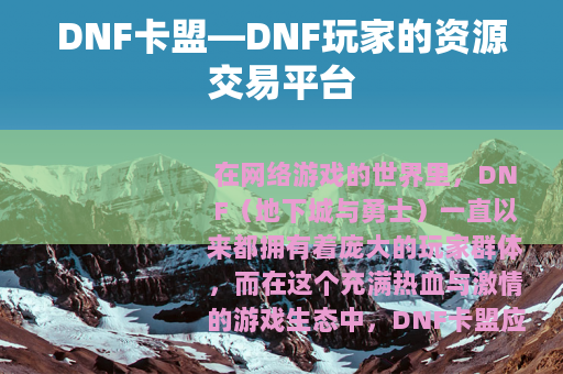 在网络游戏的世界里,DNF(地下城与勇士)一直以来都拥有着庞大的玩家群体,而在这个充满热血与激情的游戏生态中,DNF卡盟应运而生,成为了众多玩家获取游戏资源的重要途径之一。