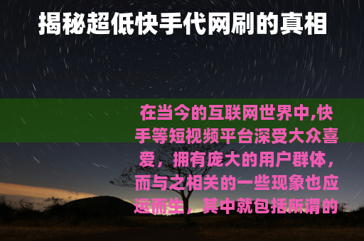在当今的互联网世界中,快手等短视频平台深受大众喜爱,拥有庞大的用户群体,而与之相关的一些现象也应运而生,其中就包括所谓的“超低快手代网刷”服务。