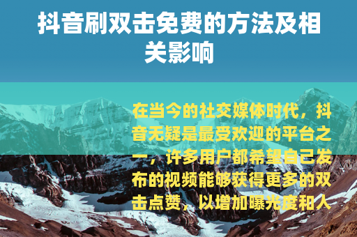 在当今的社交媒体时代,抖音无疑是最受欢迎的平台之一,许多用户都希望自己发布的视频能够获得更多的双击点赞,以增加曝光度和人气,而抖音刷双击免费的话题也因此备受关注。