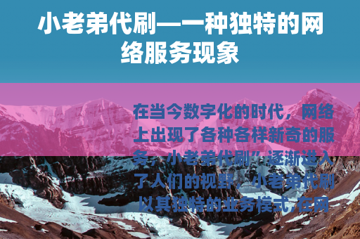 在当今数字化的时代,网络上出现了各种各样新奇的服务,小老弟代刷”逐渐进入了人们的视野,小老弟代刷以其独特的业务模式,在网络的世界里占据了一席之地。