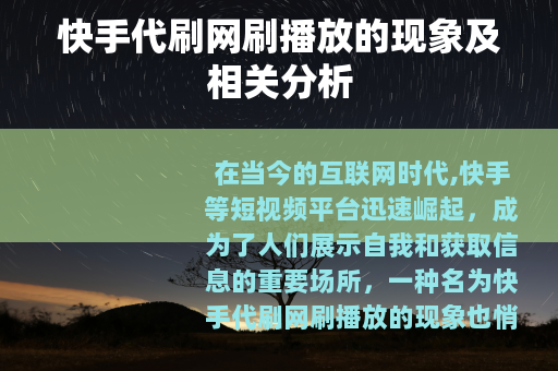 在当今的互联网时代,快手等短视频平台迅速崛起,成为了人们展示自我和获取信息的重要场所,一种名为快手代刷网刷播放的现象也悄然出现。