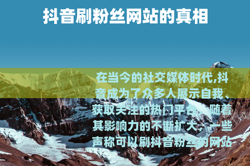 在当今的社交媒体时代,抖音成为了众多人展示自我、获取关注的热门平台,随着其影响力的不断扩大,一些声称可以刷抖音粉丝的网站也悄然出现。