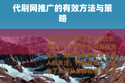 代刷网推广需要综合运用多种策略和方法,不断优化和完善自身的服务和推广手段,才能在激烈的市场竞争中脱颖而出,吸引更多的用户,实现可持续发展,通过注重网站建设、内容营销、搜索引擎优化、合作联盟、用户口碑和线下推广等方面的工作,代刷网能够不断提升自身的知名度和影响力,为客户提供更优质的服务,同时也为自身的发展创造更多的机会和价值,在未来,随着网络技术的不断发展和市场需求的变化,代刷网推广也将不断面临新的挑战和机遇,需要从业者们不断创新和探索,以适应市场的变化,实现更好的发展。