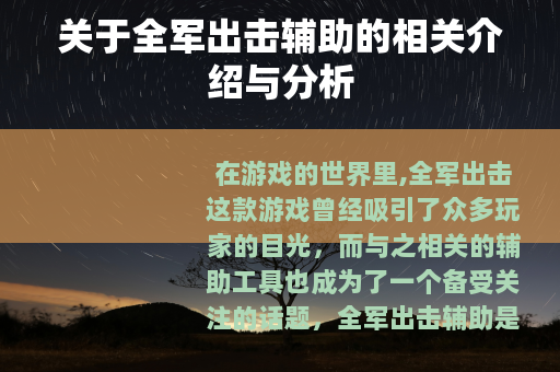 在游戏的世界里,全军出击这款游戏曾经吸引了众多玩家的目光,而与之相关的辅助工具也成为了一个备受关注的话题。