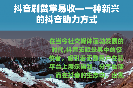 在当今社交媒体蓬勃发展的时代,抖音无疑是其中的佼佼者,吸引着无数用户在其平台上展示自我、分享生活,而在抖音的生态中,出现了诸如抖音刷赞掌易收这样的服务,为众多抖音创作者提供了一种新的助力途径。