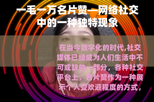 在当今数字化的时代,社交媒体已经成为人们生活中不可或缺的一部分,各种社交平台上,名片赞作为一种展示个人受欢迎程度的方式,受到了众多用户的关注,一毛一万名片赞的现象逐渐兴起,成为了一个值得探讨的话题。