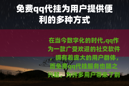 在当今数字化的时代,qq作为一款广受欢迎的社交软件,拥有着庞大的用户群体,而免费qq代挂服务也随之兴起,为许多用户带来了别样的体验。