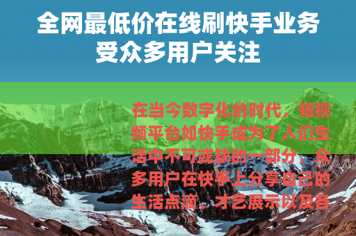 在当今数字化的时代,短视频平台如快手成为了人们生活中不可或缺的一部分,众多用户在快手上分享自己的生活点滴、才艺展示以及各种有趣的内容,希望能够获得更多的关注和点赞,而与此同时,一种名为全网最低价在线刷快手业务的现象也悄然兴起,吸引了不少人的目光。