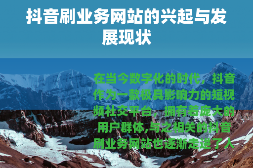 在当今数字化的时代,抖音作为一款极具影响力的短视频社交平台,拥有着庞大的用户群体,与之相关的抖音刷业务网站也逐渐走进了人们的视野。