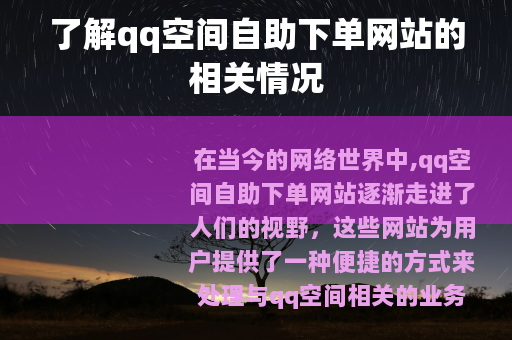 在当今的网络世界中,qq空间自助下单网站逐渐走进了人们的视野,这些网站为用户提供了一种便捷的方式来处理与qq空间相关的业务。