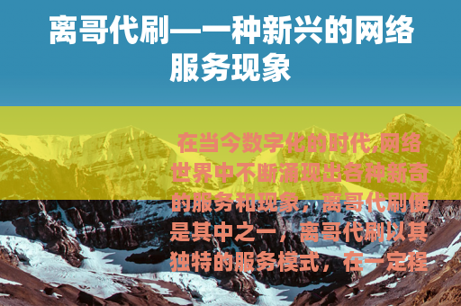 在当今数字化的时代,网络世界中不断涌现出各种新奇的服务和现象,离哥代刷便是其中之一,离哥代刷以其独特的服务模式,在一定程度上满足了部分用户在网络平台上的特定需求。