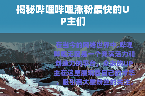 在当今的网络世界中,哔哩哔哩无疑是一个充满活力和创造力的平台,众多的UP主在这里展现着自己的才华,吸引着大量粉丝的关注,究竟哪些UP主在哔哩哔哩上能够实现涨粉最快呢?