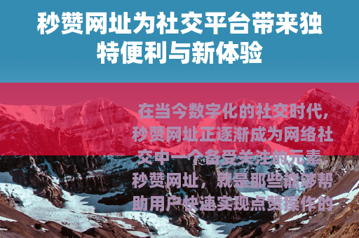 在当今数字化的社交时代,秒赞网址正逐渐成为网络社交中一个备受关注的元素,秒赞网址,就是那些能够帮助用户快速实现点赞操作的特定链接。