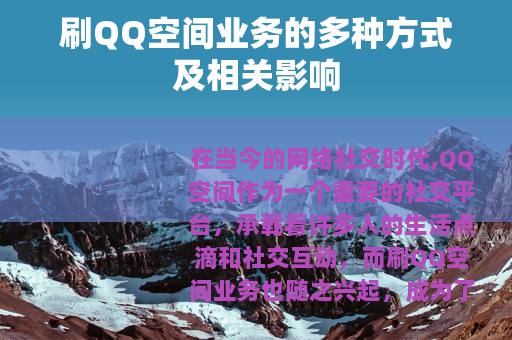 在当今的网络社交时代,QQ空间作为一个重要的社交平台,承载着许多人的生活点滴和社交互动,而刷QQ空间业务也随之兴起,成为了一种独特的网络现象。