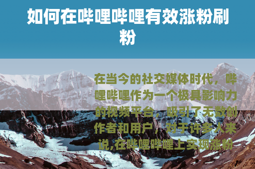 在当今的社交媒体时代,哔哩哔哩作为一个极具影响力的视频平台,吸引了无数创作者和用户,对于许多人来说,在哔哩哔哩上实现涨粉刷粉是他们努力的目标之一。