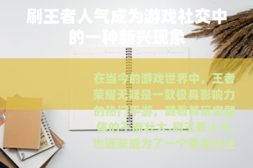 在当今的游戏世界中,王者荣耀无疑是一款极具影响力的热门手游,随着其玩家群体的不断壮大,刷王者人气也逐渐成为了一个备受关注的话题。
