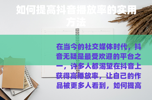 要提高抖音的播放率,需要从内容质量、创意、标题文案、热门话题以及发布时间等多个方面入手,不断优化和改进自己的视频创作和发布策略,这样才能在竞争激烈的抖音平台上获得更多的关注和认可,让自己的视频获得更高的播放率。