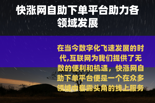 在当今数字化飞速发展的时代,互联网为我们提供了无数的便利和机遇,快涨网自助下单平台便是一个在众多领域中崭露头角的线上服务平台。