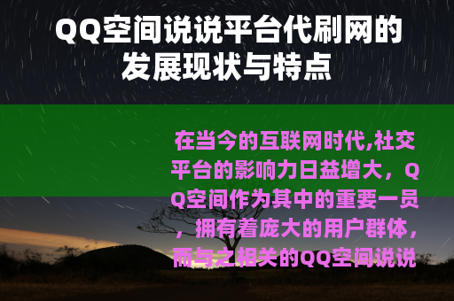 在当今的互联网时代,社交平台的影响力日益增大,QQ空间作为其中的重要一员,拥有着庞大的用户群体,而与之相关的QQ空间说说平台代刷网也随之兴起,成为了一个独特的网络现象。