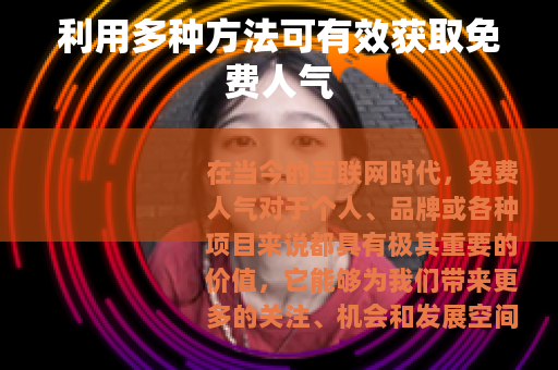 我们要关注行业的动态和趋势,及时调整自己的策略和方法,随着互联网技术的不断发展和用户需求的变化,获取免费人气的方式也在不断更新和演变,我们要保持敏锐的洞察力,跟上时代的步伐,不断尝试新的方法和手段,才能在激烈的竞争中脱颖而出,获得持续的免费人气增长。