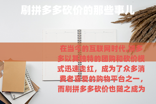 在当今的互联网时代,拼多多以其独特的团购和砍价模式迅速走红,成为了众多消费者喜爱的购物平台之一,而刷拼多多砍价也随之成为了一个热门话题,许多人都在尝试通过各种方式来提高自己砍价成功的几率。