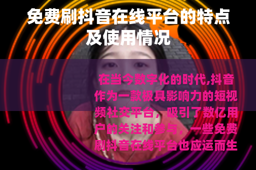 在当今数字化的时代,抖音作为一款极具影响力的短视频社交平台,吸引了数亿用户的关注和参与,一些免费刷抖音在线平台也应运而生,它们为用户提供了一种别样的抖音体验。