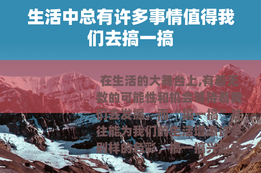 在生活的大舞台上,有着无数的可能性和机会等待着我们去发掘,而“搞一搞”往往能为我们的生活增添许多别样的色彩。