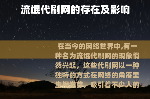 在当今的网络世界中,有一种名为流氓代刷网的现象悄然兴起,这些代刷网以一种独特的方式在网络的角落里生根发芽,吸引着不少人的目光。